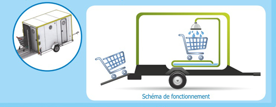 L’Entreprise Adaptée (entreprise employant au minimum 80% de travailleurs en situation de handicap) Arceau Anjou a présenté un modèle de station de lavage pour caddie complètement autonome et sans risque pour l’environnement. Le Clean'n Shop nettoie complètement et désinfecte les chariots à partir de 70cl d’eau et d’un désinfectant efficace et inoffensif pour la nature et la santé.